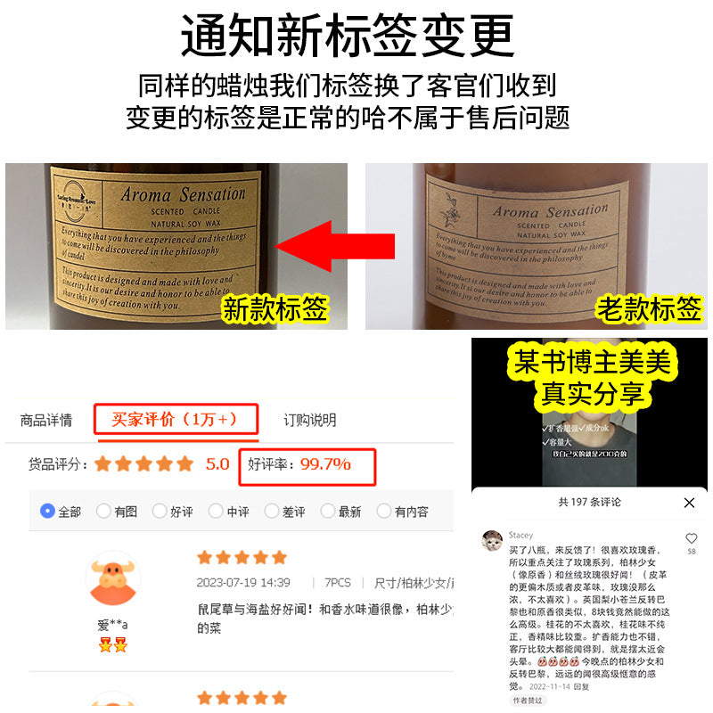 Scented candles smokeless handmade soy candles Romantic vibe aromatherapy essential oil candles glass candles