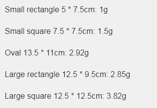 - Dimensions: Rectangular (6x4 cm), Oval (5x3.5 cm)