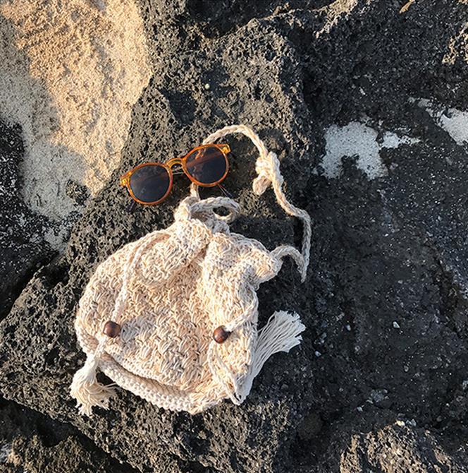 Japanese Xinsen women's retro small bag cotton and linen woven women's bag one-shoulder oblique span bucket bag tassel drawstring beach bag