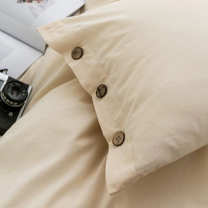 Pure Cotton Japanese-Style Bedding Set – 3-Piece Solid Color