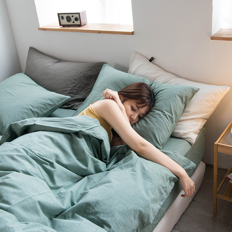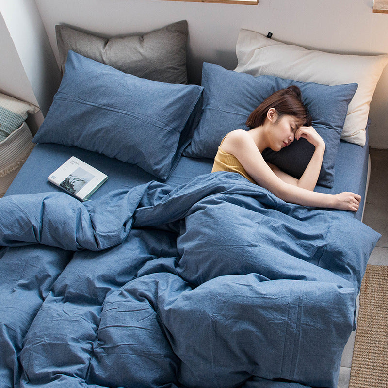 Japanese-Style Pure Cotton Bedding Set – Washed Cotton Comfort for Dorms & Homes