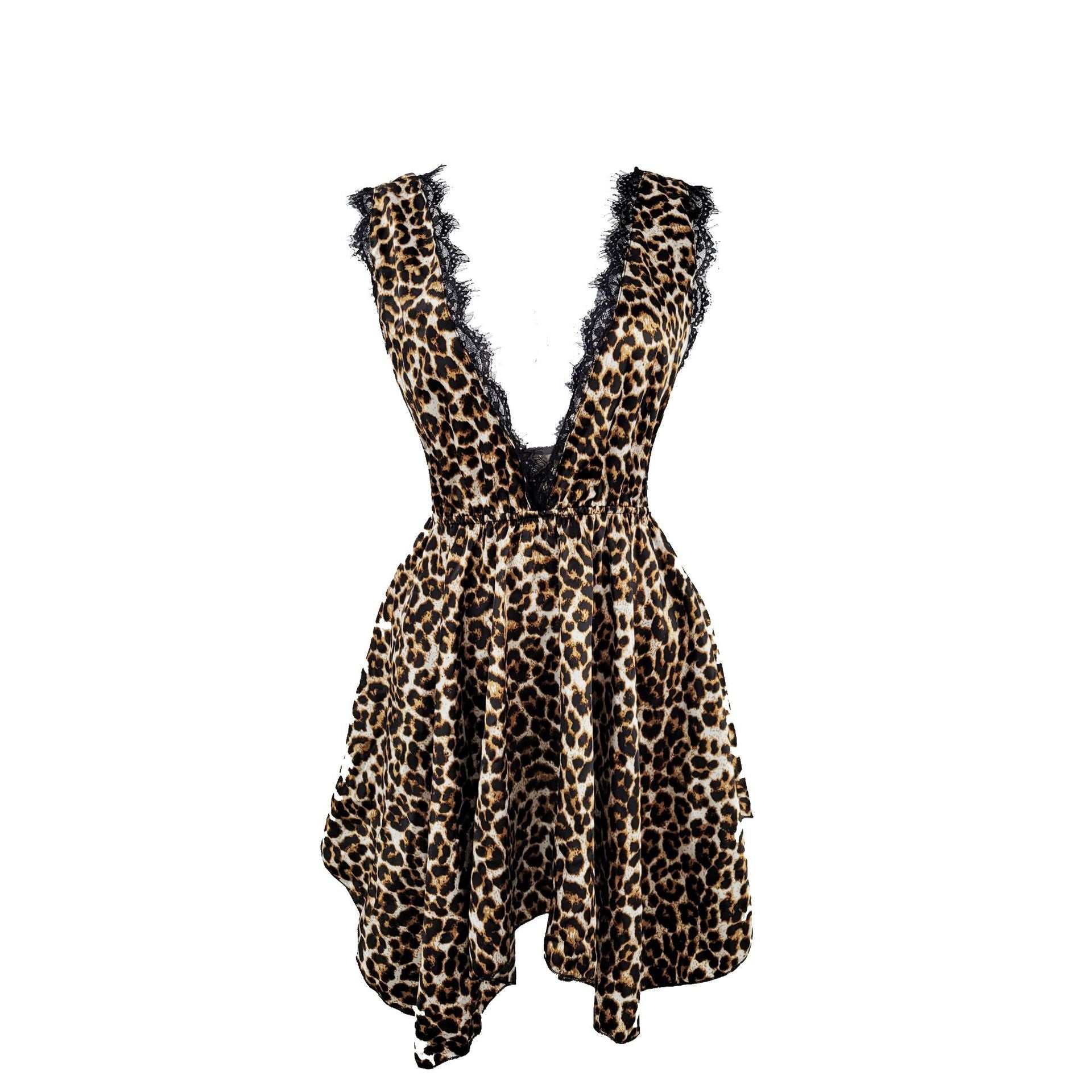 Crush Orange Leopard Satin Lingerie – Sexy Eyelash Lace Suspender Nightdress