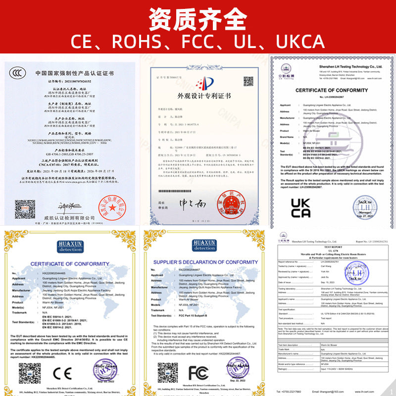 - Material: ABS flame-retardant plastic + PTC ceramic heating element