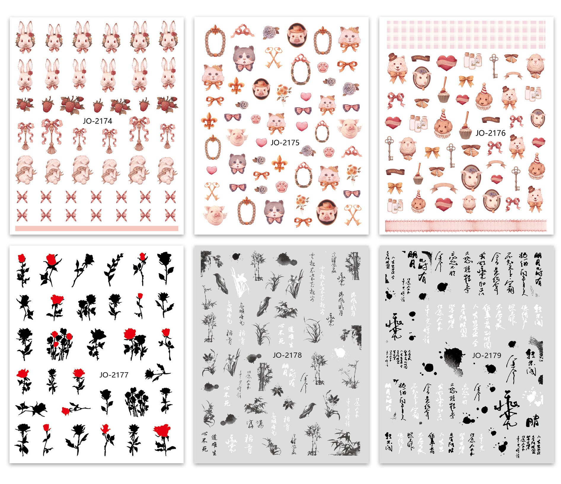 Add a touch of elegance and whimsy to your nails with our Rococo-inspired bunny and rose nail art stickers. Perfect for DIY manicures, these high-quality stickers feature national-style ink effects and blood rose accents for a bold, artistic look.