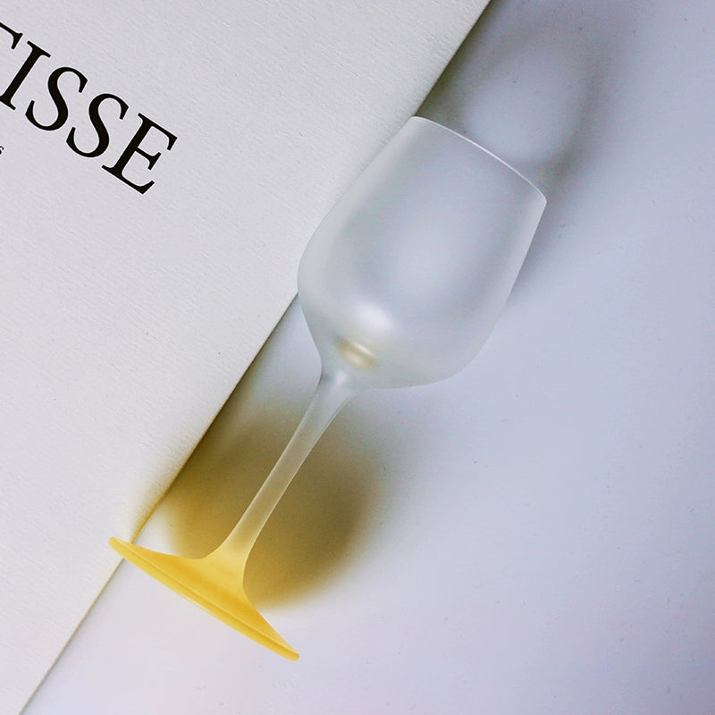 Add a touch of elegance to your table with this creative frosted yellow glass goblet. Perfect for sake, champagne, red wine, or as a decorative piece. Its compact size and vintage charm make it a unique gift or collectible.